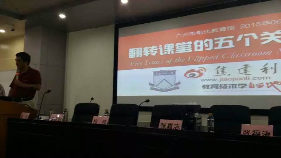2015年6月25日,全国微课与翻转课堂专题(广州)培训会在广州市教育局教育信息中心召开,教育部教育管理信息中心处长祁伟,教育部教育管理中心项目主任罗志刚,教育部教育信息化专项重点课题“基于微课的翻转课堂创新教学模式研究”课题专家组組长、华南师大教育技术学院副院长焦建利教授、博导,课题组专家、昌乐一中副校长张福涛,广州市教育信息中心张嘉志主任,广州华颖外语学校马新校长,北大未名研究院教育创新研究中心袁金超老师等出席会议并做专题报告。会议由广州市教育信息中心副主任王旭主持,全市各区信息中心主要负责人、各中小学校长、骨干教师近200人参加会议,大家就微课与翻转课堂的设计与应用等话题进行深入交流。